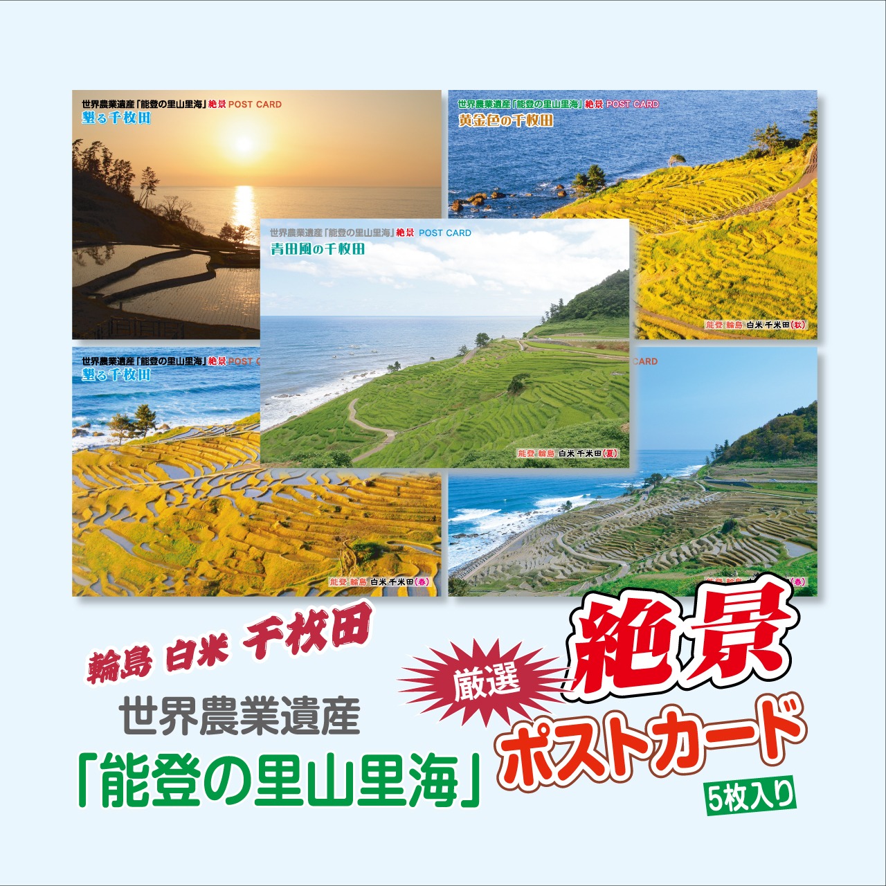 「能登の里山里海」の代表的な棚田のポストカード5枚セットです。